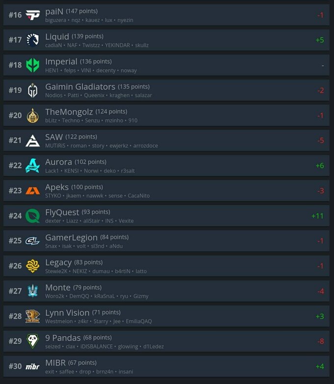 Monte продолжает падение. В новом рейтинге украинская команда занимает лишь 27-е место. Команда Александра Зинченко Passion UA поднялась на 79-ю строчку.