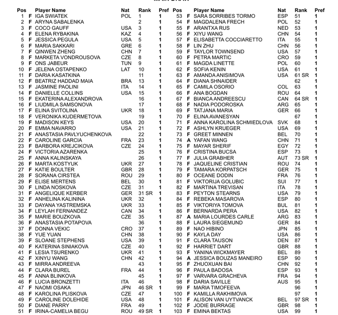 Отметим, что восемь теннисисток решили воспользоваться своим защищенным рейтингом. Это касается Анжелик Кербер (№31) и Наоми Осаки (№46), которые вернулись в Австралию в январе после рождения первого ребенка в 2023 году, Ирина-Камелия Бегу (№49), Аманда Анисимова (№61), Бьянка Андрееску (№64), Юлия Грабер (№73), Алисон ван Эйтванк (№97) и Александра Крунич (№99). Они также попадут в основную сетку турнира, отсечка на данный момент установлена на уровне 99-го номера мирового рейтинга.