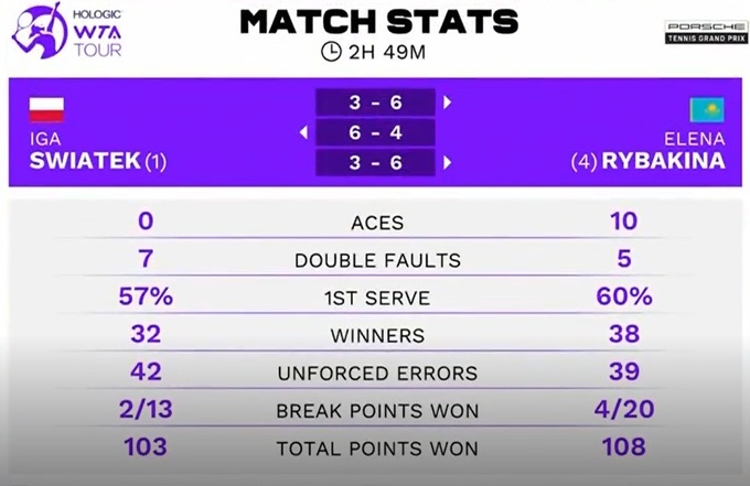 Отметим, что Свёнтек выигрывала турнир в Штутгарте два предыдущих года подряд. Более того, она ранее здесь никогда не проигрывала ни единого матча (10-0 до этого поединка).