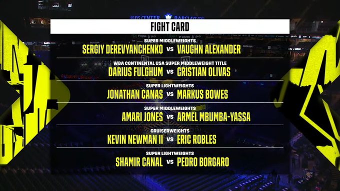 В андеркарде запланирован 10-раундовый поединок, в котором встретятся украинец Сергея Деревянченко (14–5, 10 KO) и американец Вон Александер (18–10–1, 11 KO).