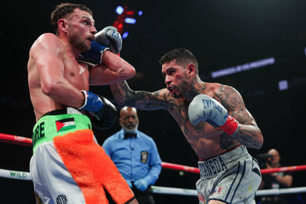 В соглавном бою в лимите суперлегкого веса (до 63,5 кг) на ринг вышли американец Арнольд Барбоса (новый рекорд: 30–0, 11 КО) и ирландец Шон Маккомб (18–2, 5 КО)
