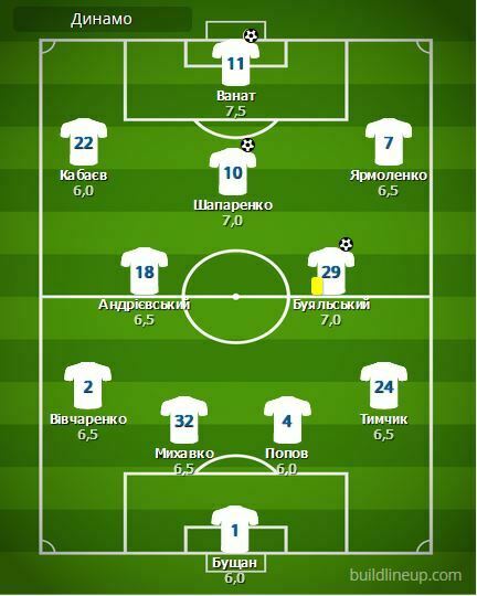 «Динамо»: Бущан - Вивчаренко, Михавко, Попов, Тымчик (Караваев, 85) - Андриевский, Шапаренко (Шепелев, 85), Буяльский - Кабаев, Ярмоленко (Диалло, 78) - Ванат (Супряга, 78).