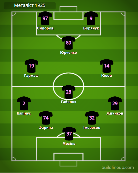 «Металлист 1925»: Мозиль – Капинус (Безуглый, 84), Фарина, Имереков, Жичиков (Червак, 68) – Габелок – Гармаш, Юсов (Ари, 62) – Юрченко – Сидоров, Борячук (Фримпонг, 61).