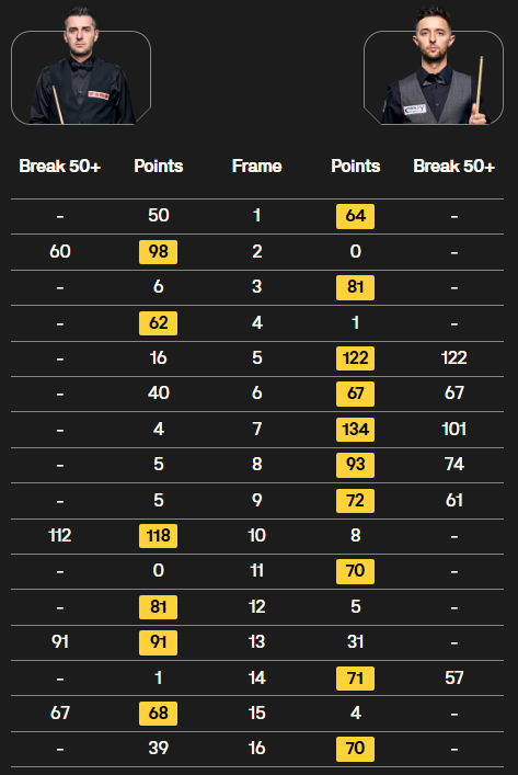 - Марк Селби (Англия) – Джо O'Коннор (Англия) – 6:10