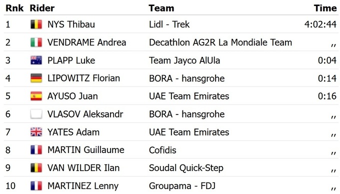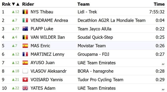 На этапе с горным финишем Сальван/Ле Марекотт он из отрыва опередил итальянца Андреа Вендраме из «Decathlon Ag2r La Mondiale» и австралийца Люка Плаппа из «Jayco AlUla». Это позволило Нису возглавить общий зачет многодневки.