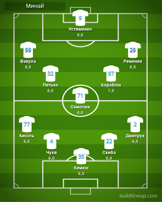 «Минай» (замены): Гуничев – 6,0, Витенчук – 6,0, Матюшенко – б/о, Корнийчук – б/о.
