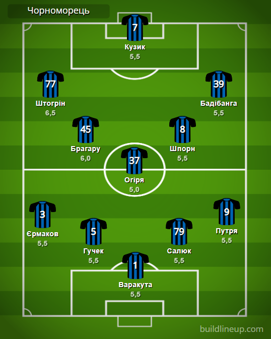 «Черноморец»: Варакута – Ермаков, Гучек (Бойчук, 46), Салюк, Путря (Иеде, 83) – Брагару, Огиря (Авагимян, 46), Шпорн – Штогрин, Кузык (Зе, 70), Бадибанга (Альваренга, 70).