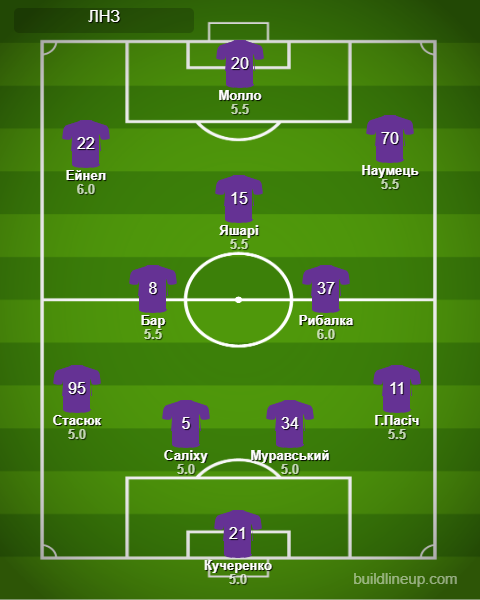 ЛНЗ: Кучеренко – Муравский, Салиху, Стасюк, Г.Пасич (Олейник, 86) – Яшари, Бар (Бойко, 62), Рыбалка, Эйнел, Наумец (Насонов, 72) – Молло (Хобленко, 46).
