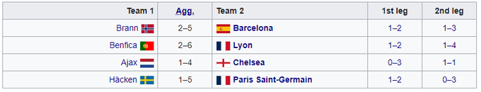 - 27 апреля. Челси (Англия) – Барселона (Испания) – 0:2 (первый матч – 1:0)