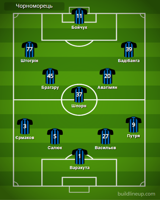 «Черноморец»: Варакута – Ермаков, Салюк (Иеде, 75), Васильев, Путря (Альваренга, 78) – Брагару, Шпорн, Авагимян (Кузык, 66) – Штогрин (Гучек, 46), Бойчук (Зе, 65), Бадибанга.