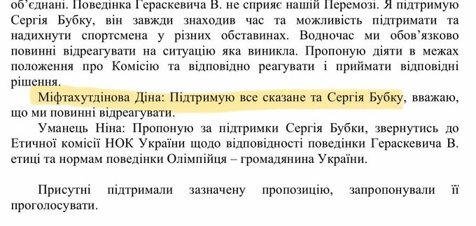 На одном из заседаний «Ассоциации Олимпийцев Украины», госпожа Дина поддержала тезис, что «поведение Гераскевича не способствует нашей Победе». Интересно, считает ли она действия своей дочери такими, которые «способствуют Победе»?