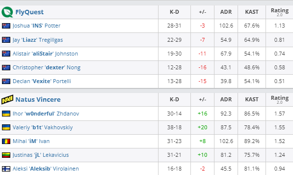 На карте Ancient Natus Vincere добыли победу со счетом 13:5, а на карте Mirage – 13:6. В составе украинского клуба лишь Алекси Aleksib Виролайнен завершил встречу с отрицательным показателем K/D.