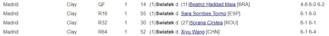 Таким образом, серия матчей, в которых Свёнтек выигрывала сет со счетом 6:0 или 6:1, увеличилась до пяти подряд. В карьере польки это случилось впервые.