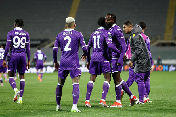 В первом полуфинальном матче Лиги конференций «Фиорентина» дома вырвала победу в матче с «Брюгге» (3:2).
