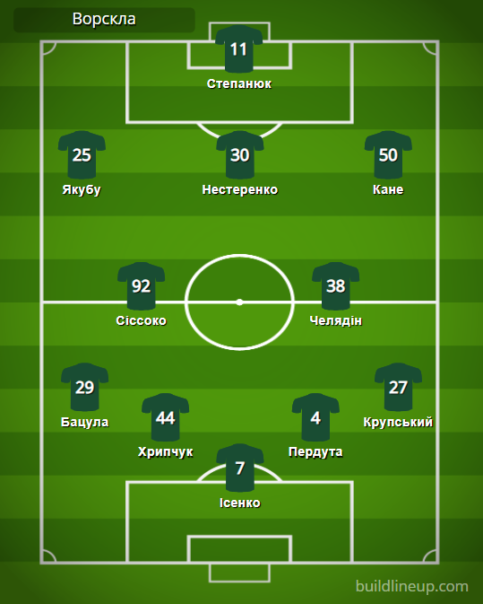 «Ворскла»: Исенко – Бацула, Хрипчук, Пердута, Крупский – Сиссоко (Глущенко, 75), Челядин (Скляр, 59) – Якубу (Корниенко, 46), Нестеренко (Мякушко, 59), Кане (Фелипе, 75) – Степанюк.