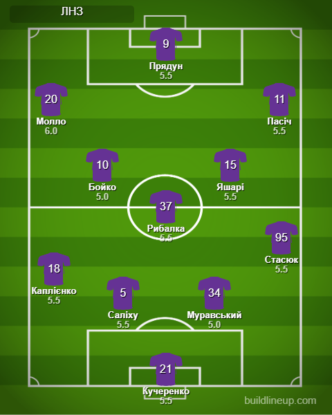 ЛНЗ: Кучеренко – Муравский, Салиху, Каплиенко, Стасюк (Наумец, 46) – Рыбалка, Бойко (Бар, 46), Яшари (Олейник, 56) – Пасич, Молло (Тилль, 80), Прядун (Эйнел, 46).