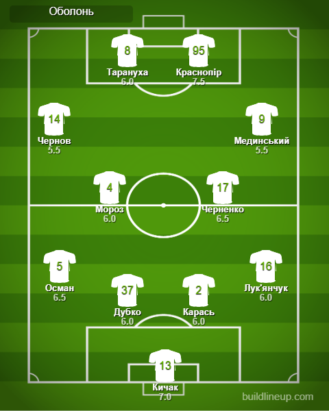 Замены «Оболонь»: Косовский - 5.5, Прокопенко - б/о, Грисьо - 5.5, Вишневский - 5.0, Суханов - б/о.