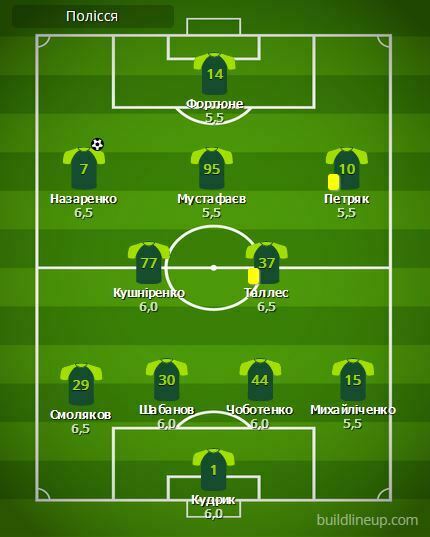 Замены «Полесья»: Кравченко – 5,5; Грицук – б/о; Ндукве – б/о; Луифер – б/о; Раско – б/о.