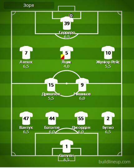 «Заря»: Сапутин, Батагов, Джордан, Вантух, Бутко, Дрышлюк, Мишнев (Хахлев, 81), Жуниор Рейс (Жан Клод, 65), Яцик, Антюх (Мичин, 93), Герреро (Ндур, 93)