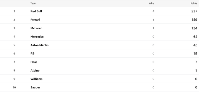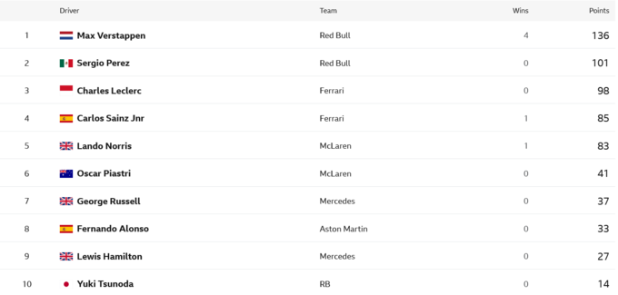 Общий зачет Формулы-1 после Гран-при Майами