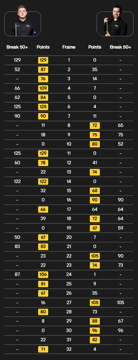 Для 32-летнего Кайрена Уилсона по прозвищу Воин это был 2-й финал ЧМ. В 2020 году он проиграл решающий матч знаменитому английскому снукеристу Ронни О'Салливану (8:18). В активе Воина теперь – 6 титулов рейтинговых турниров (в 14 сыгранных финалах).