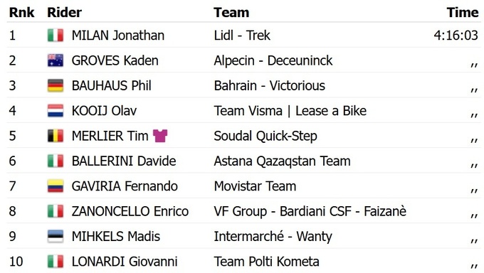 Для Милана это вторая в карьере победа на этапах Джиро. Первая была одержана ровно год назад – 7 мая 2023 года.