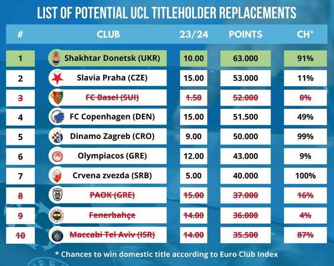 Клубный рейтинг претендентов на замену обладателя ЛЧ