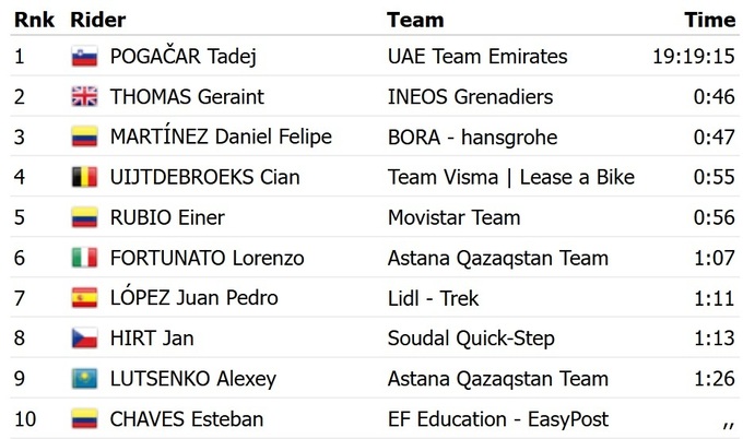 Для 28-летнего Тома это первая в карьере победа на этапах Гран тура. Розовую майку лидера общего зачета сохранил словенец Тадей Погачар из «UAE Emirates».