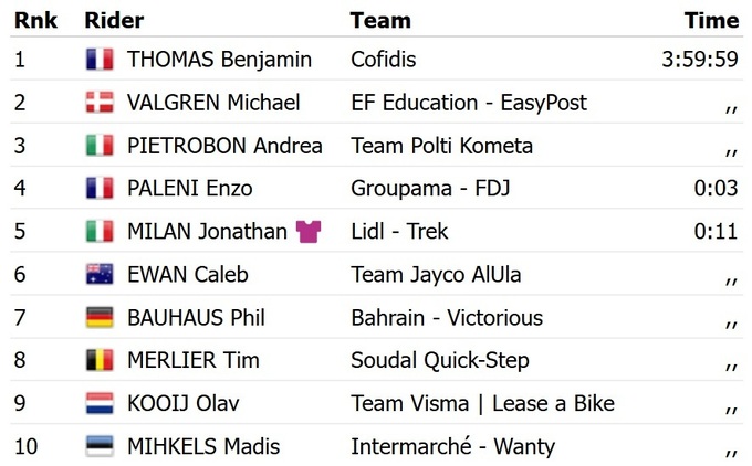Вчера четвертый этап выиграл Джонатан Милан.