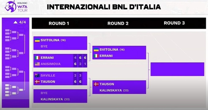 Во втором круге представительница Италии сыграет с украинкой Элиной Свитолиной (№19 WTA).