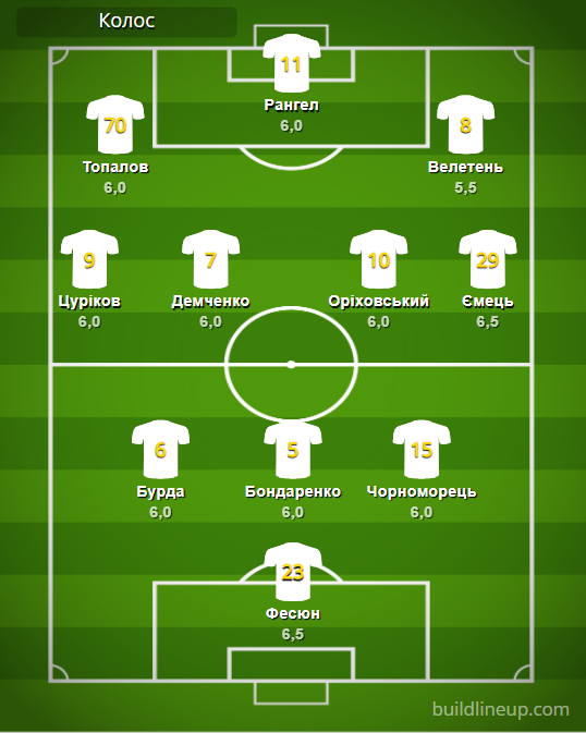 «Колос»: Фесюн – Бурда, Бондаренко, Черноморец – Цуриков, Демченко, Ориховский, Емец – Топалов, Рангел (Паулаускас, 68), Велетень (Ильин, 46).