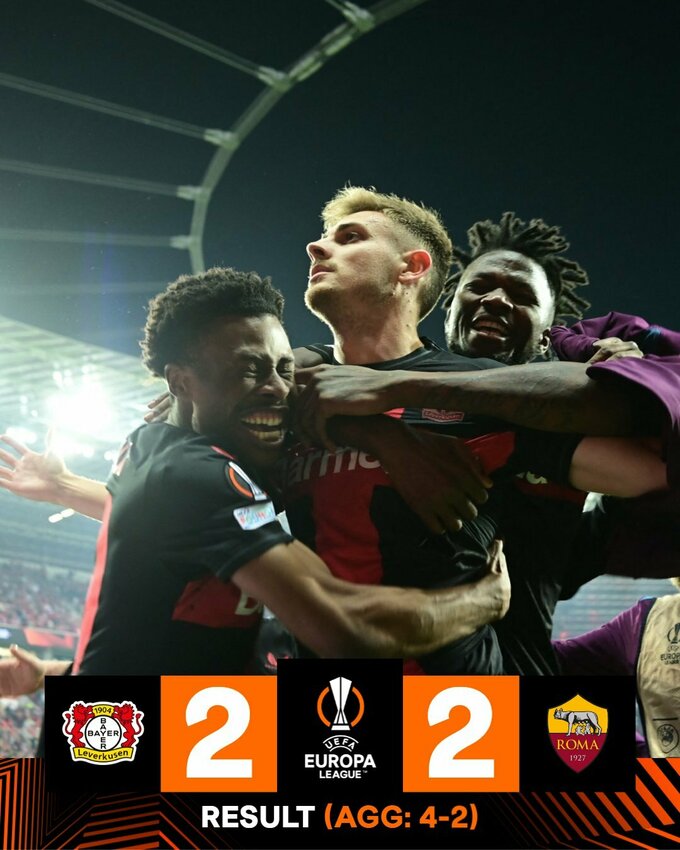 Немецкий Байер отыгрался с 0:2 в игре с итальянской Ромой (2:2) и вышел в финал Лиги Европы.
