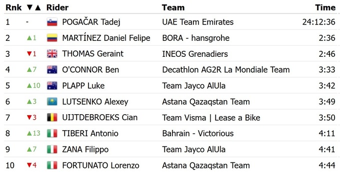 Это вторая победа Погачара на нынешней Джиро. Словенец значительно укрепил свое лидерство в общем зачете.