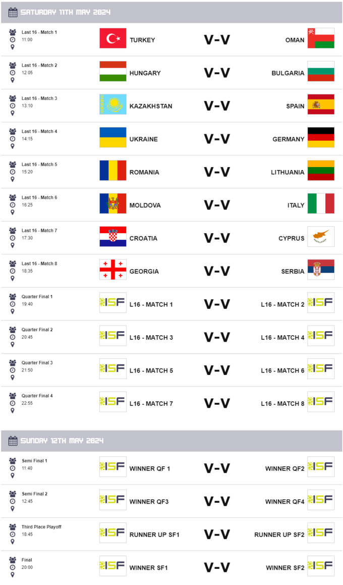 Соперником Украины в 1/8 финала будет Германия, которая заняла 3-е место в группе B. Матч пройдет 11 мая в 14:15. Победитель выйдет в 1/4 финала на лучшего в противостоянии Казахстана и Испании. Четвертьфиналы пройдут вечером 11 мая, а полуфиналы и финалы – 12 мая.