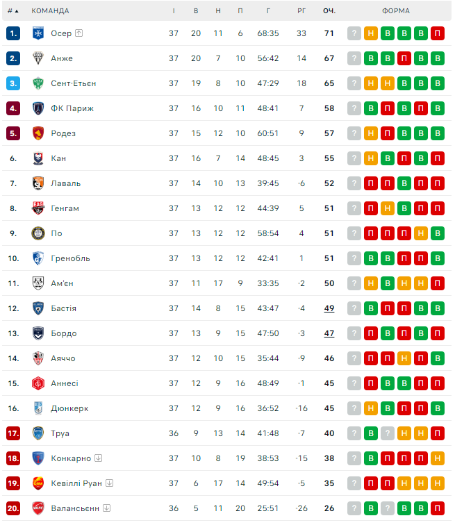 В последнем туре будет определен обладатель второй путевки в Лигу 1. На нее претендуют «Анже» (67) и «Сент-Этьен» (65). Еще один тикет в элиту будет разыгран в переходном плей-офф.