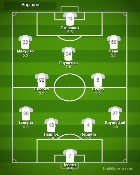 «Ворскла»: Исенко – Бацула, Пердута, Крупский, Павлюк – Сиссоко, Глущенко (Фелипе, 84), Скляр (Челядин, 57) – Кане (Корниенко, 81), Мякушко (Нестеренко, 81) – Степанюк.