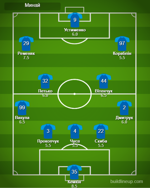 Замены «Минай»: Гуничев - 6.0, Семотюк - 6.0, Немчанинов, Попов, Корнийчук - все б/о.