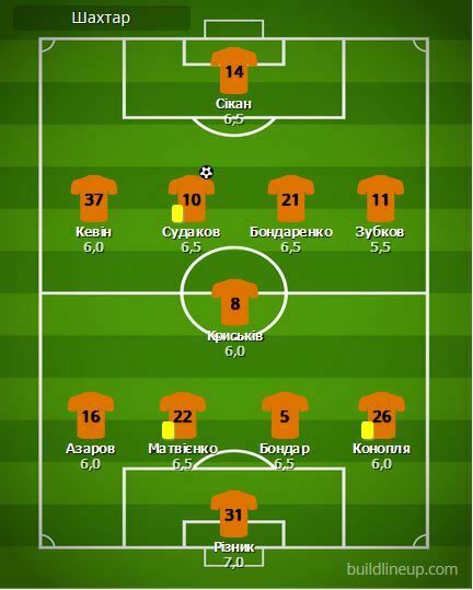 «Шахтер»: Ризнык, Конопля, Бондарь, Матвиенко, Азаров (Ракицкий, 72), Крыськив, Судаков (Марлон, 84), Зубков (Эгиналду, 84), Бондаренко (Степаненко, 61), Кевин, Сикан (Траоре, 61)