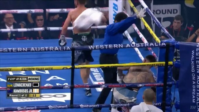 ВИДЕО. Ломаченко нокаутировал Камбососа в 11-м раунде