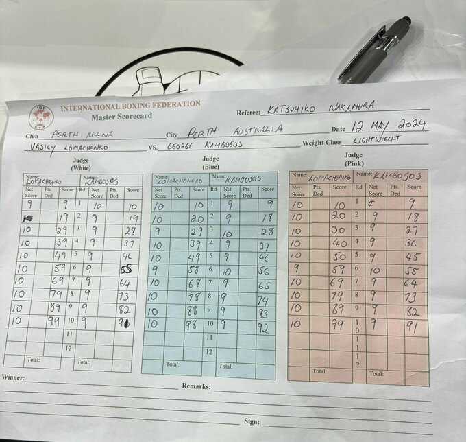Сколько раундов взял Камбосос? Обнародованы записки судей в бою Ломаченко