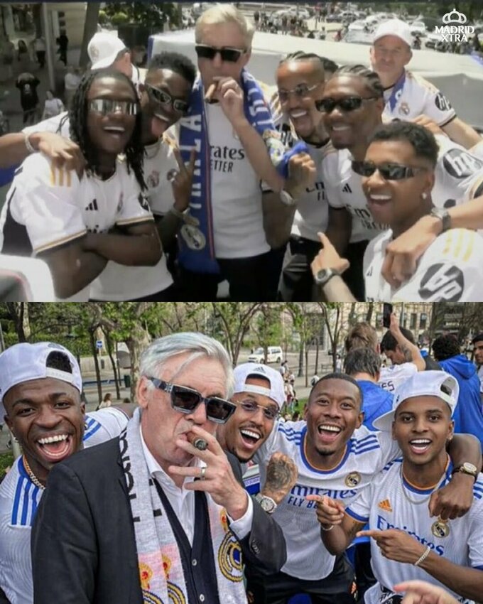 По ходу празднования главный тренер столичной команды Карло Анчелотти сфотографировался с футболистами команды в солнцезащитных очках и с сигарой. Он повторил известный снимок 2022 года, который используется в многочисленных мемах. Тогда итальянский специалист тоже позировал с игроками, был в очках и сигарой.