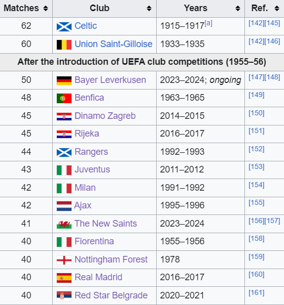 Зі статті на Трибуні під назвою «Байер повторив рекорд усіх часів! Показуємо рейтинг непереможних серій».
