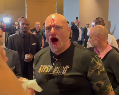 ‼️ Tyson Fury's father John Fury going head-to-head with a member of Oleksandr Usyk's team in a heated clash today and being left bleeding as a result…