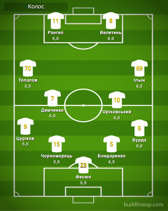 «Колос»: Фесюн – Цуриков, Черноморец (Гончаренко, 72), Бондаренко, Бурда – Топалов, Демченко, Ориховский (Криворучко, 72), Ильин (Салабай, 73) – Рангел (Паулаускас, 86), Велетень (Гусол, 85).