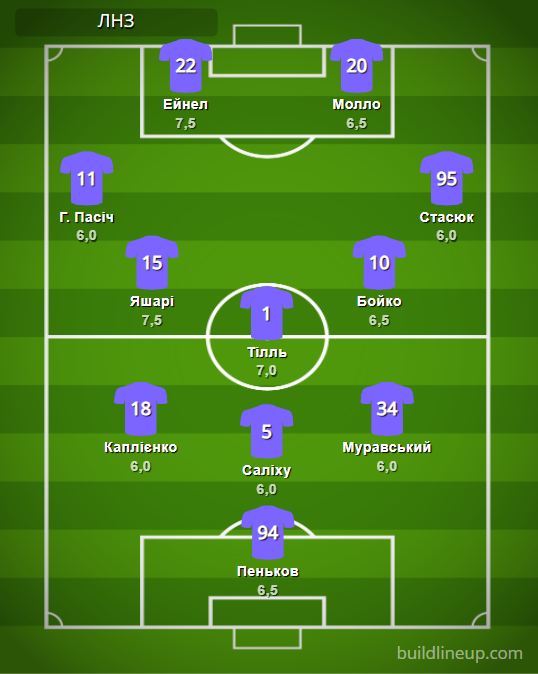 ЛНЗ: Пеньков – Каплиенко, Салиху, Муравский – Г. Пасич (Тищенко, 81), Яшари, Тилль, Бойко (Насонов, 82), Стасюк (Наумец, 61) – Эйнел (Шестаков, 77), Молло (Хобленко, 61).