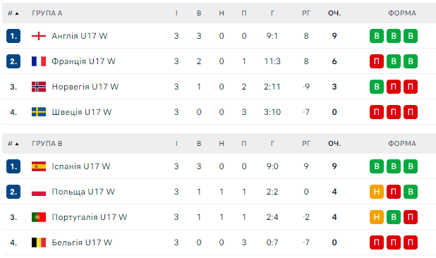 В полуфиналах сыграют: Испания U17 – Франция U17, Англия U17 – Польша U17