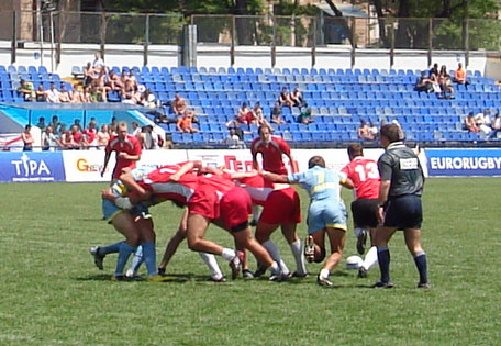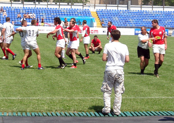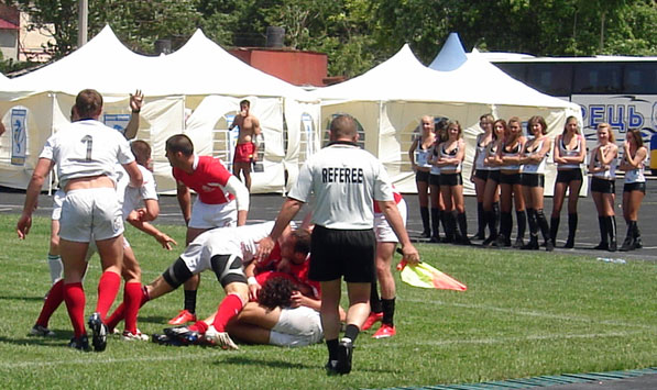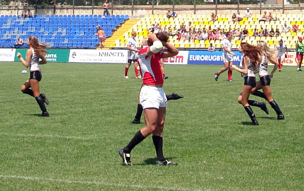 Выбежавшие на поле танцовщицы грузинских регбистов не заинтересовали