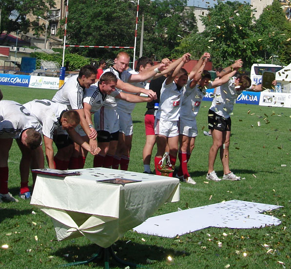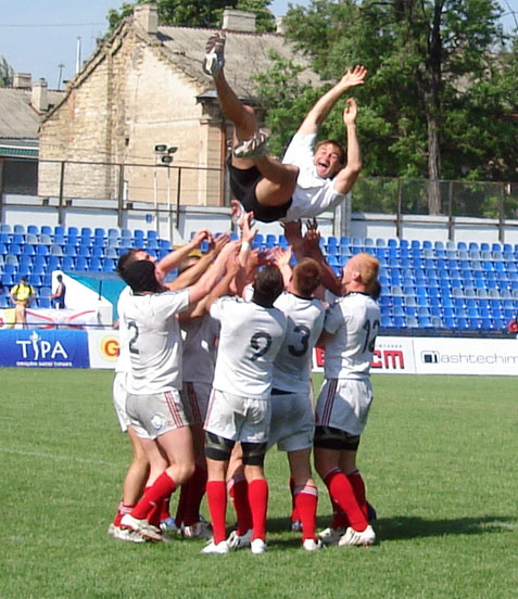 А после уверенной победы вместо дыни регбисты взялись за тренера