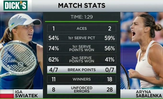 Это была 11-я встрече теннисисток, Ига теперь лидирует со счетом 8-3 в очных матчах и выиграла 3 последние встречи.