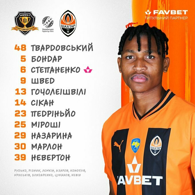 «Шахтер»: Твардовский – Бондарь, Степаненко, Швед, Гочолеишвили, Сикан, Педриньо, Мироши, Назарина, Марлон, Невертон.